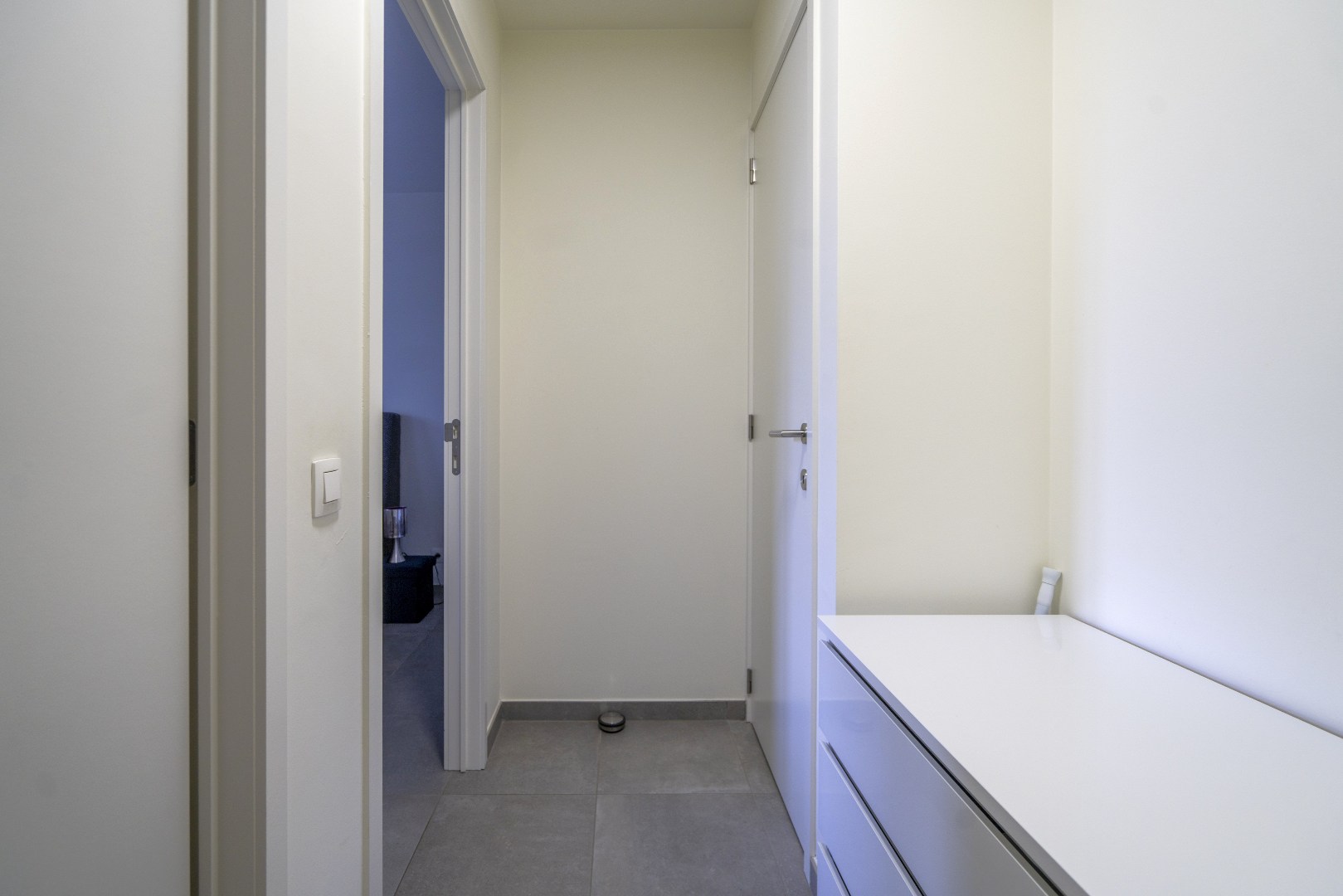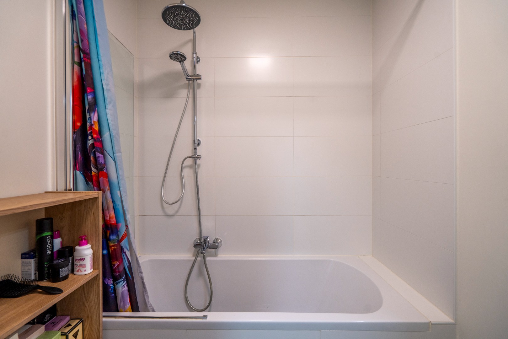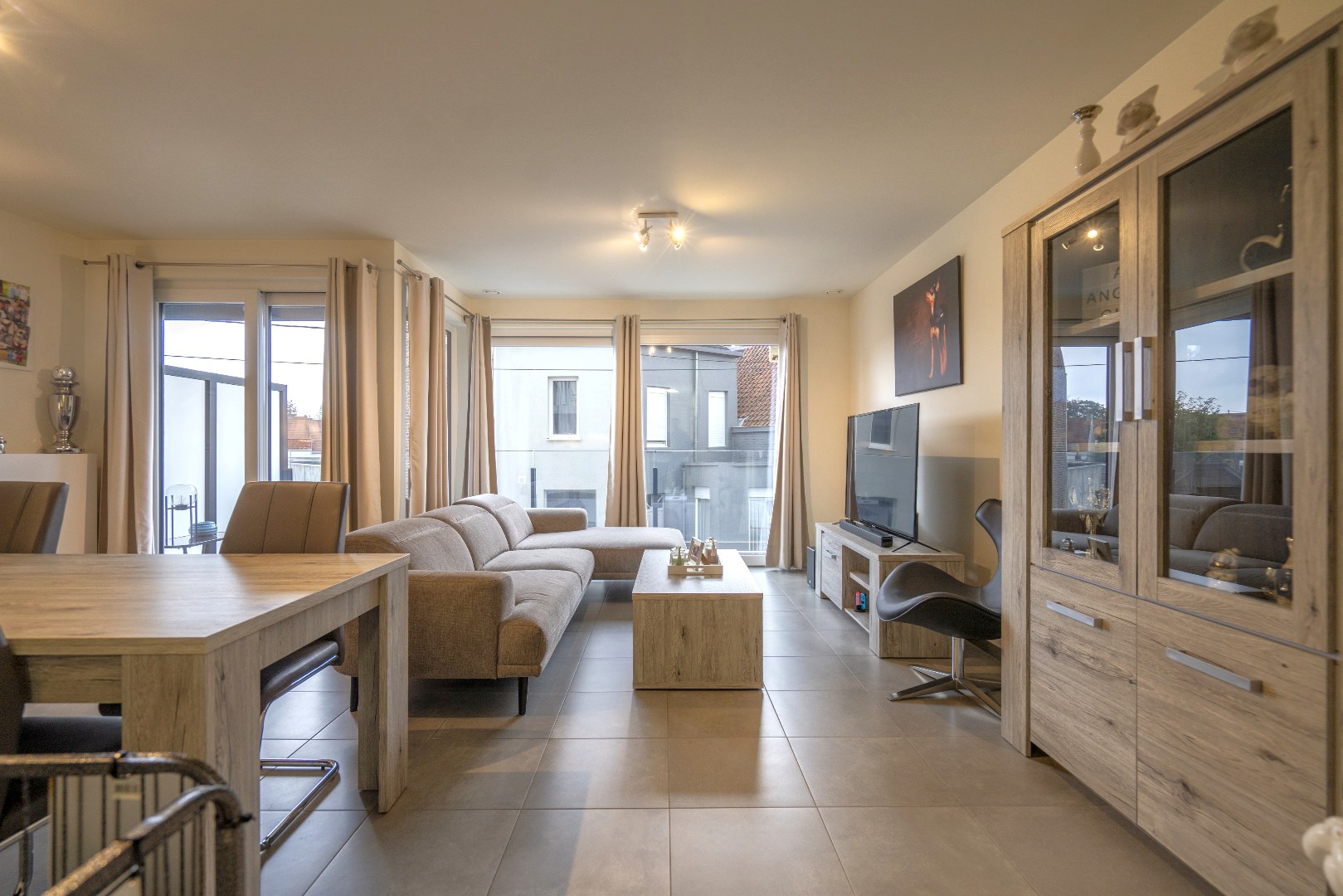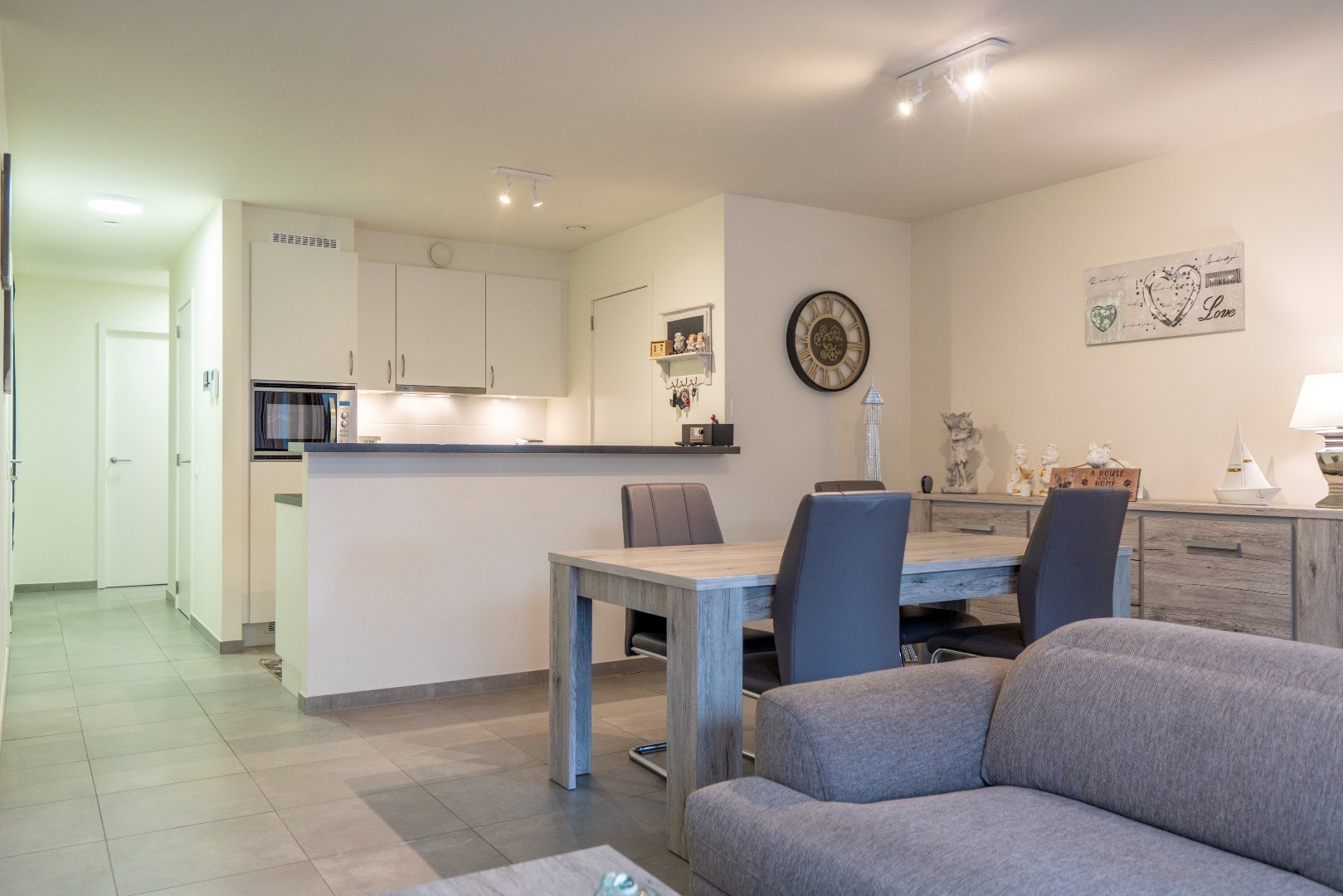 Het appartement bevindt zich op de eerste verdieping en kent een doordachte indeling. In de gezellige leefruimte heb je toegang tot het overdekt terras, de open keuken is uitgerust met alle nodige toestellen en je hebt er direct toegang tot de praktische (was)berging . Verder is er achteraan een nachthal met ruimte voor een vestiairekast, twee slaapkamers, een badkamer met wastafel, bad en douchewand, een apart toilet.