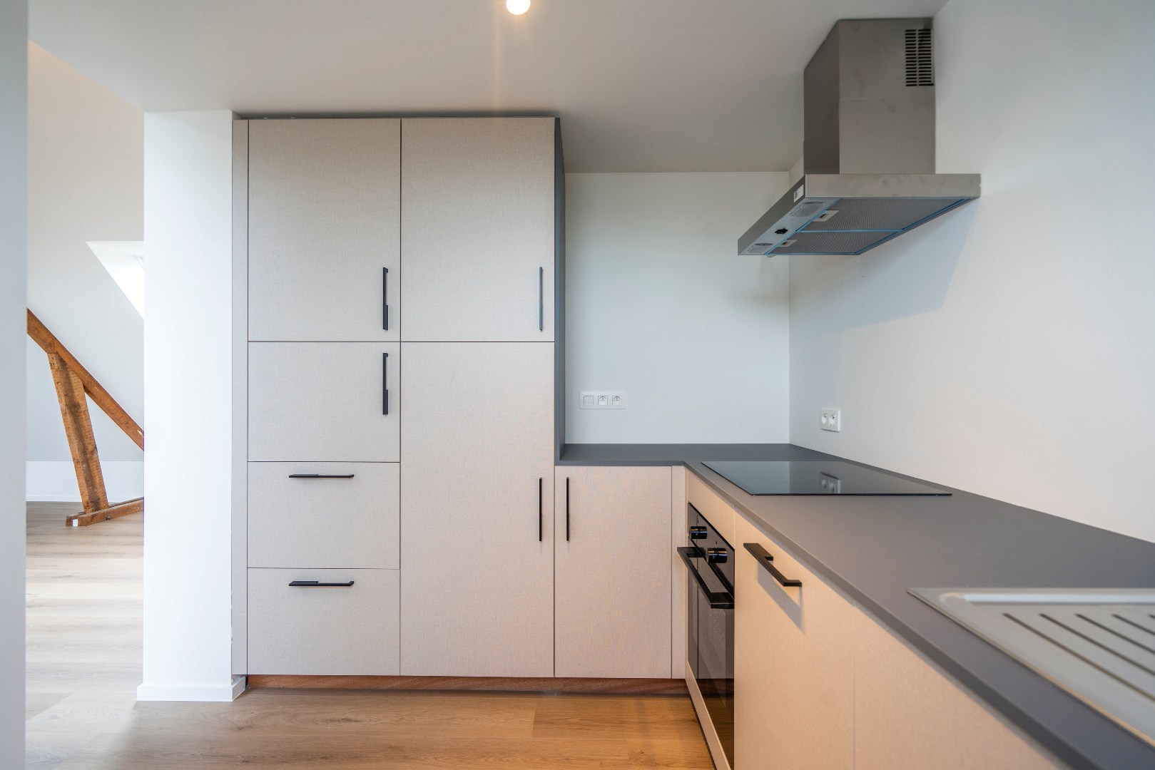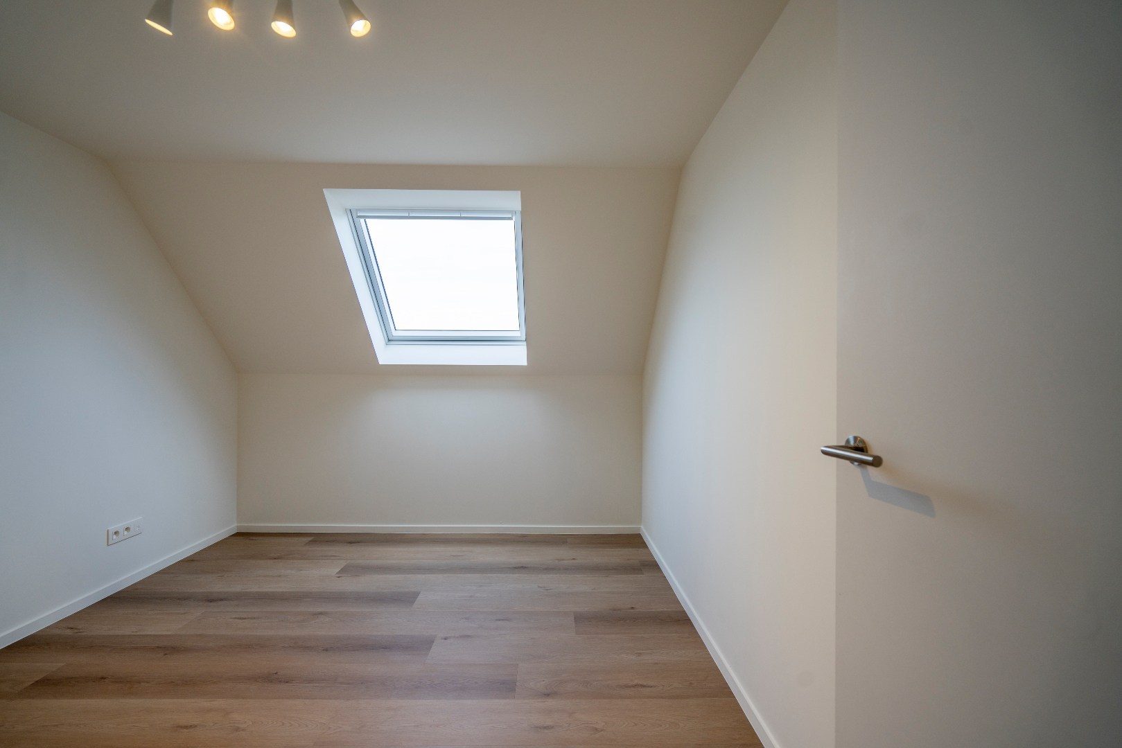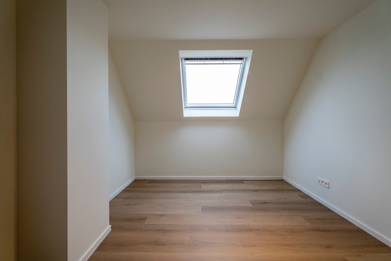 Het appartement is volledig voorzien van parket, geschilderd en afgewerkt met oog voor detail. Geen ruimteverlies dankzij de vloerverwarming. Veluxramen met gordijnen en vliegramen. Naast het gebouw is een private parkeerplaats bij te huren voor €100/maand.