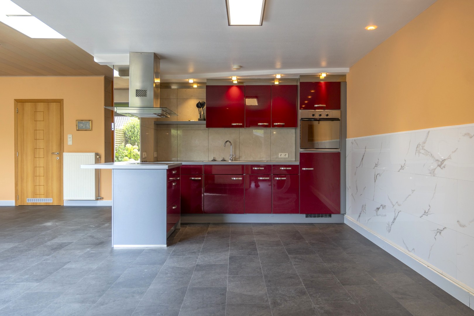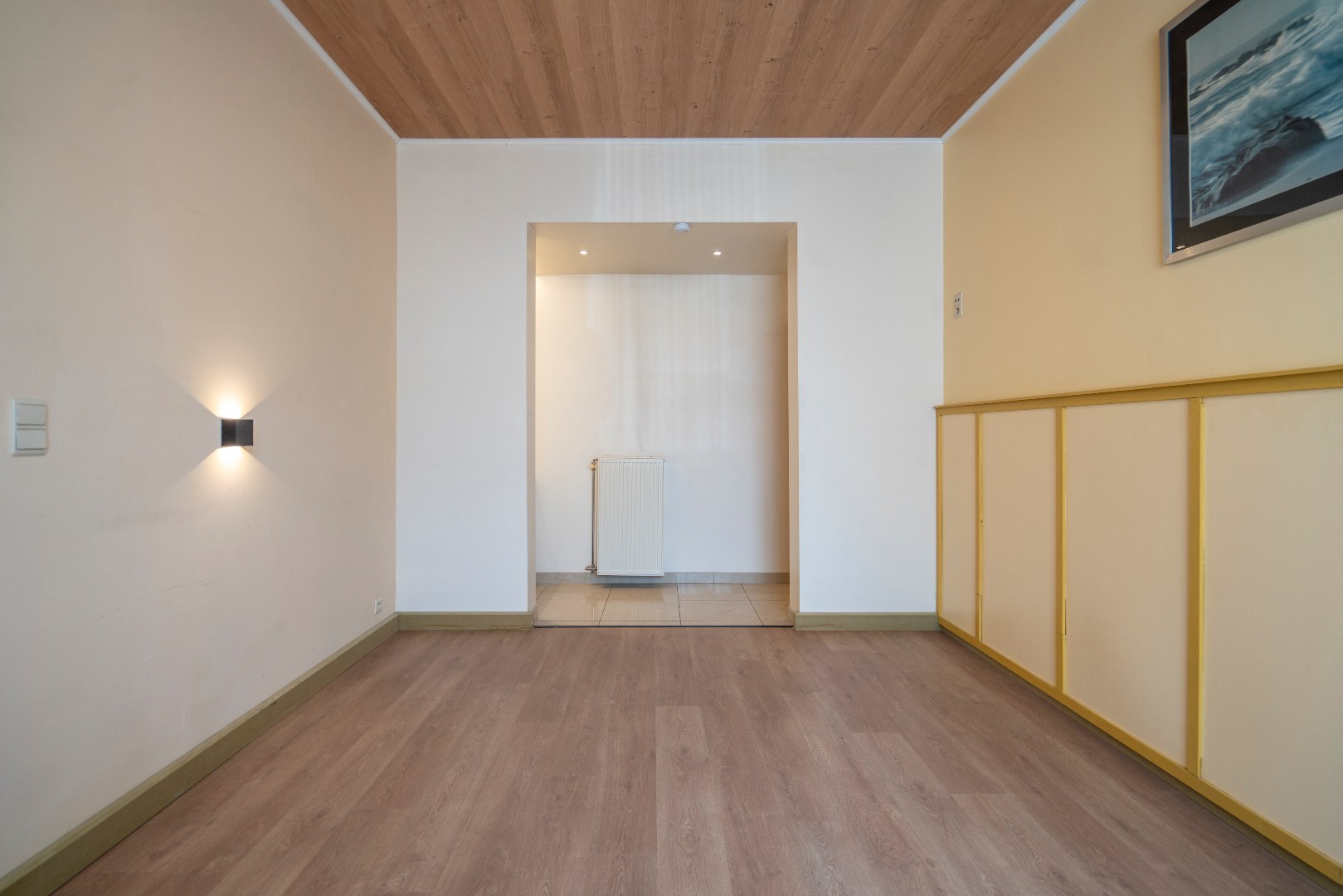 De ruime living met open keuken vormt het hart van dit appartement. De keuken is voorzien van al wat nodig is, er is geen vaatwasser. Vanuit de living is er toegang tot een bijkeuken met extra berging en een aparte hobbyruimte, ideaal voor een creatieve of praktische invulling.