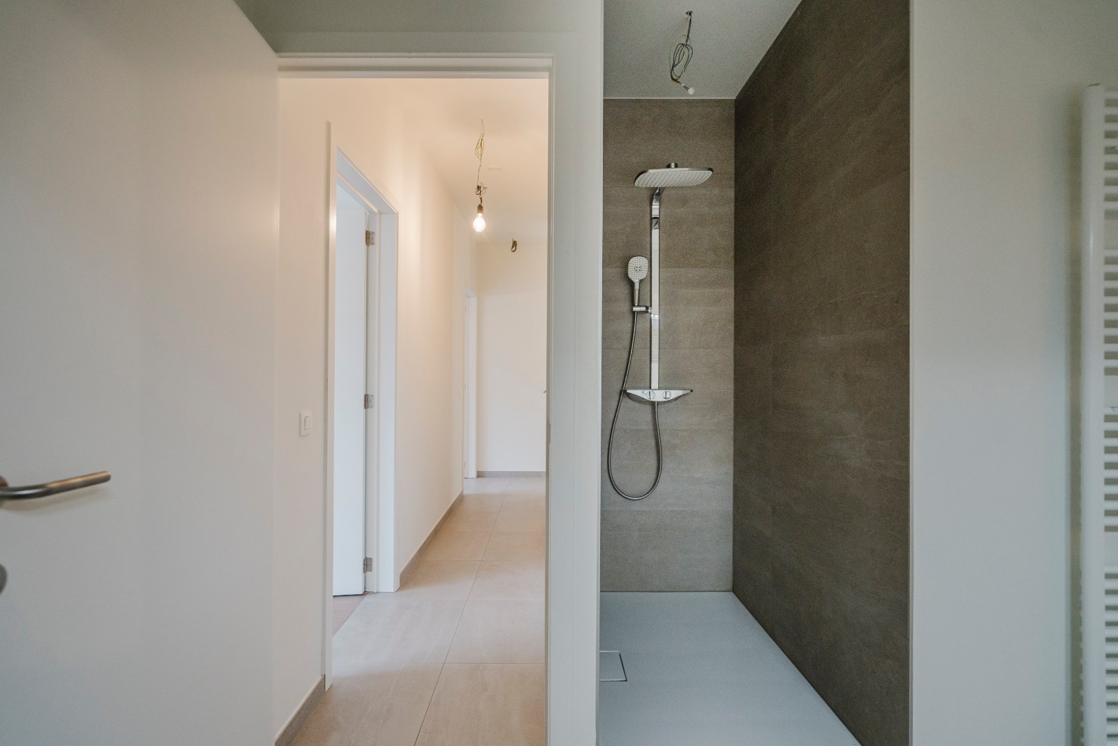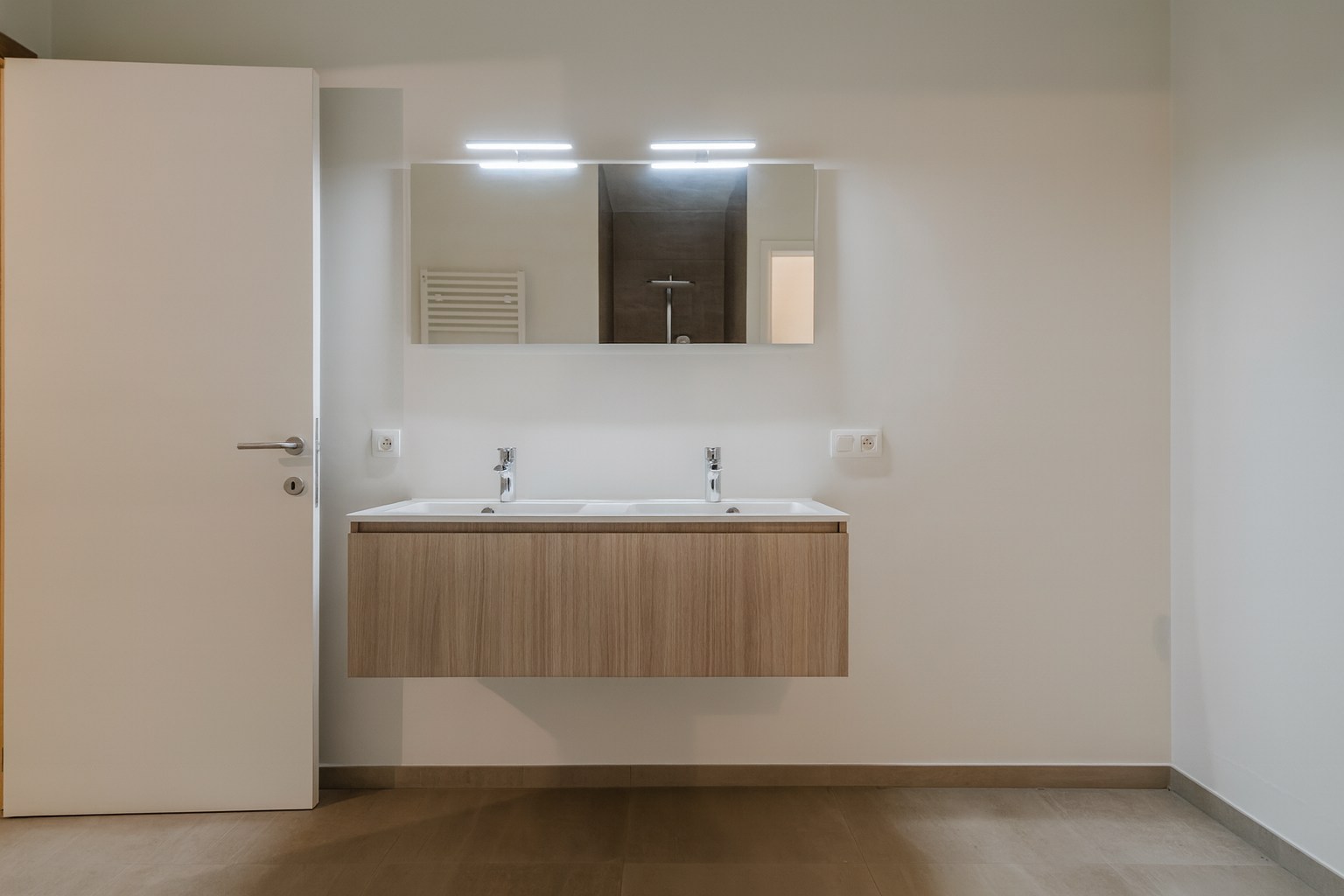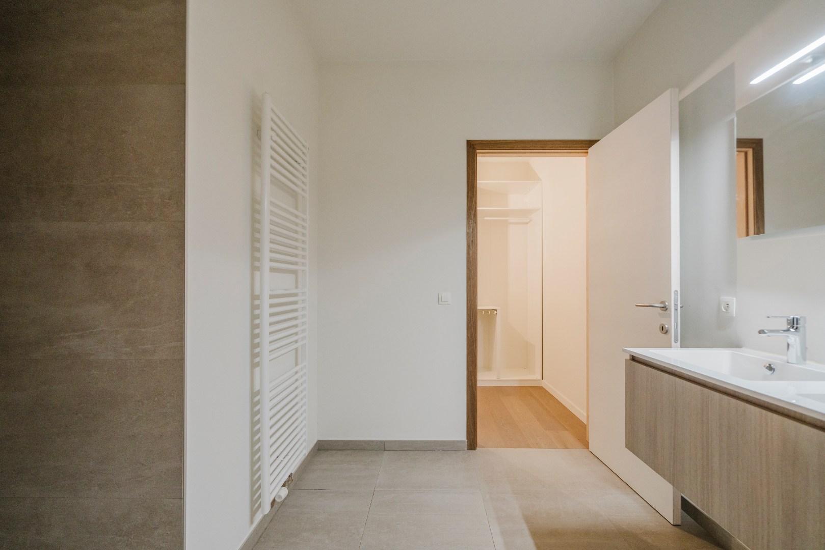 Er zijn 3 slaapkamers, waarvan 2 met dressing en een moderne ruime badkamer met inloopdouche en dubbele wastafel. Deze is zowel toegankelijk vanuit de nachthal als 1 van de slaapkamers.