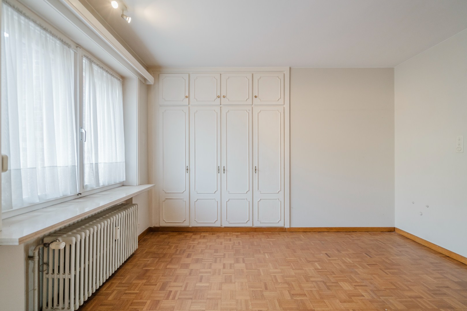 Via de royale inkomhal met vestiairemogelijkheden en gastentoilet betreedt u de gezellige leefruimte, waar de gashaard zorgt voor extra warmte en sfeer. De afgesloten keuken sluit hier mooi op aan en biedt alle mogelijkheden om naar eigen smaak te moderniseren. Vooraan bevindt zich een ruime slaapkamer, achteraan zijn er nog twee comfortabele slaapkamers en centraal in het appartement ligt een vierde slaapkamer die dankzij een patio geniet van aangenaam natuurlijk daglicht. Verschillende slaapkamers zijn uitgerust met praktische ingemaakte kasten, wat het wooncomfort aanzienlijk verhoogt. Aan de achterzijde vindt u bovendien een terras waar het heerlijk vertoeven is in alle privacy.