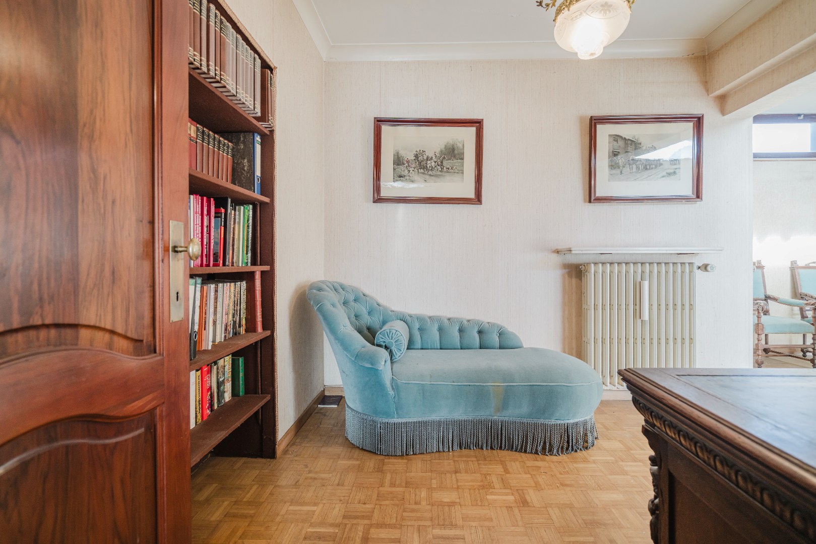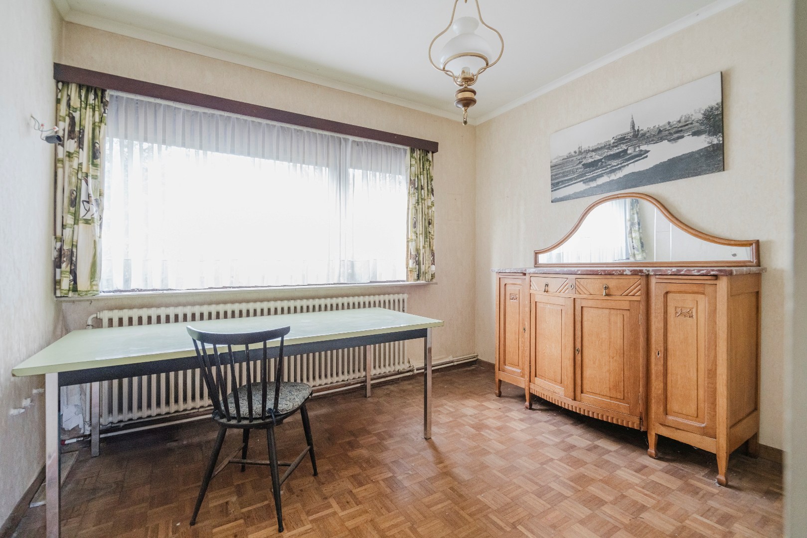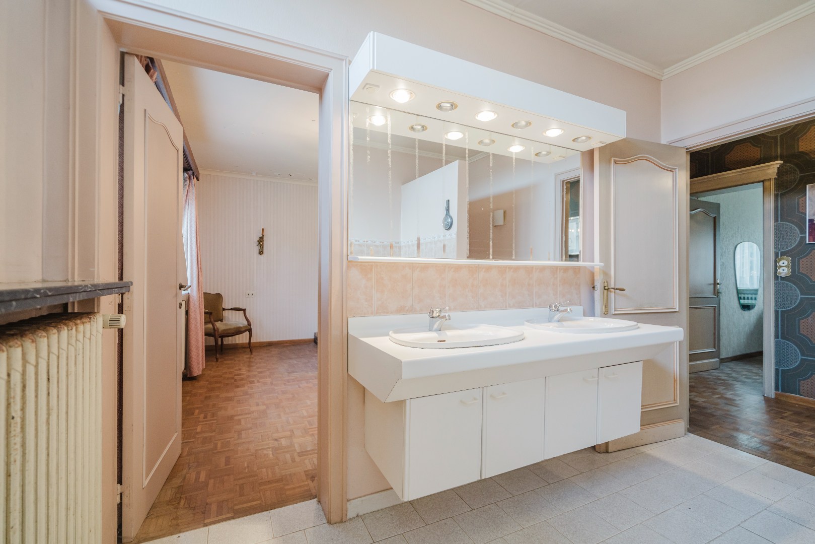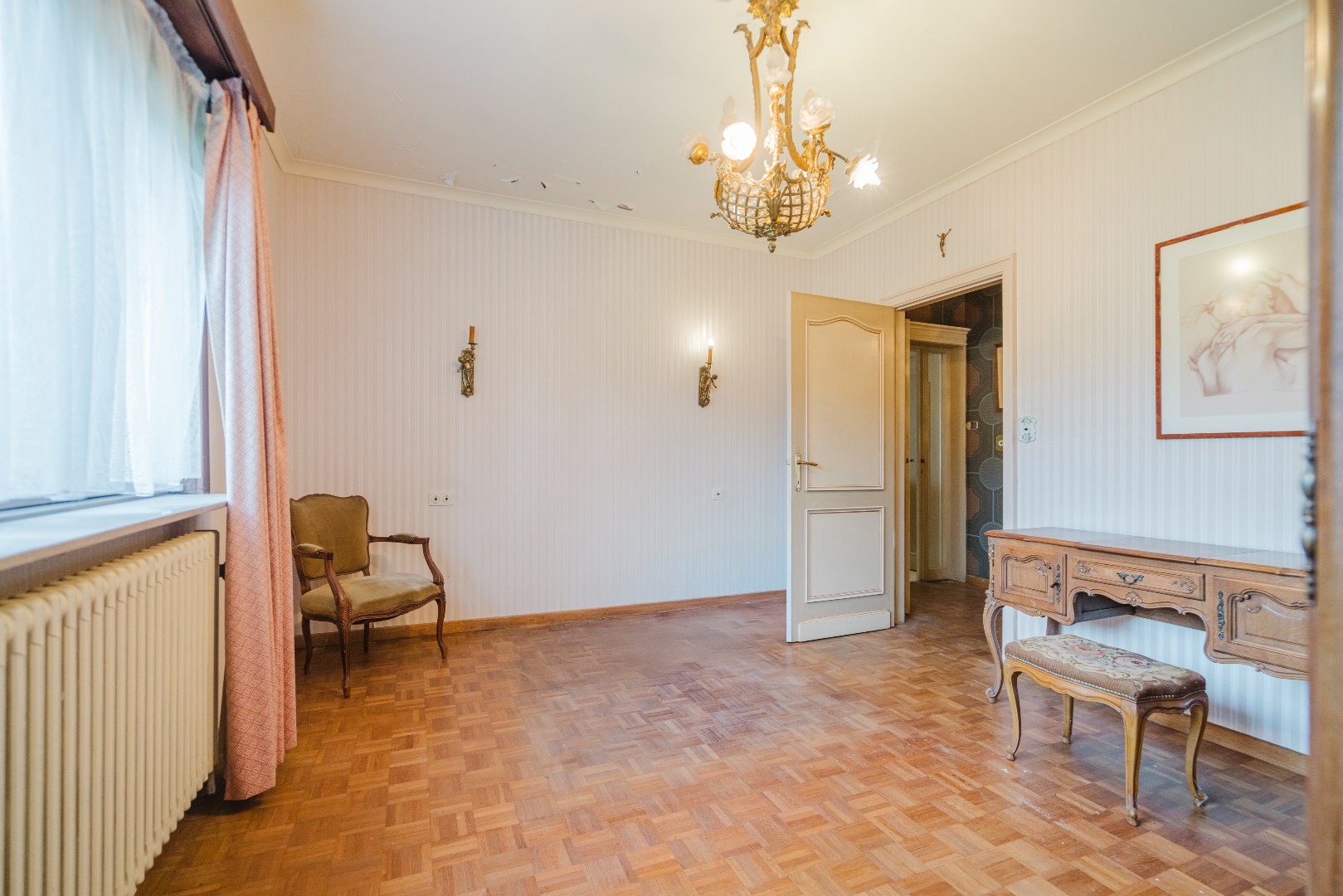 Niet alleen in de living, maar ook in alle slaapkamers ligt massieve parket, wat samen met de stijlvol afgewerkte plinten en deuren bijdraagt aan de tijdloze klasse van deze woning. De grote, aparte keuken sluit naadloos aan bij het leefgedeelte.