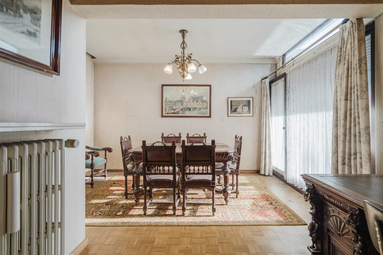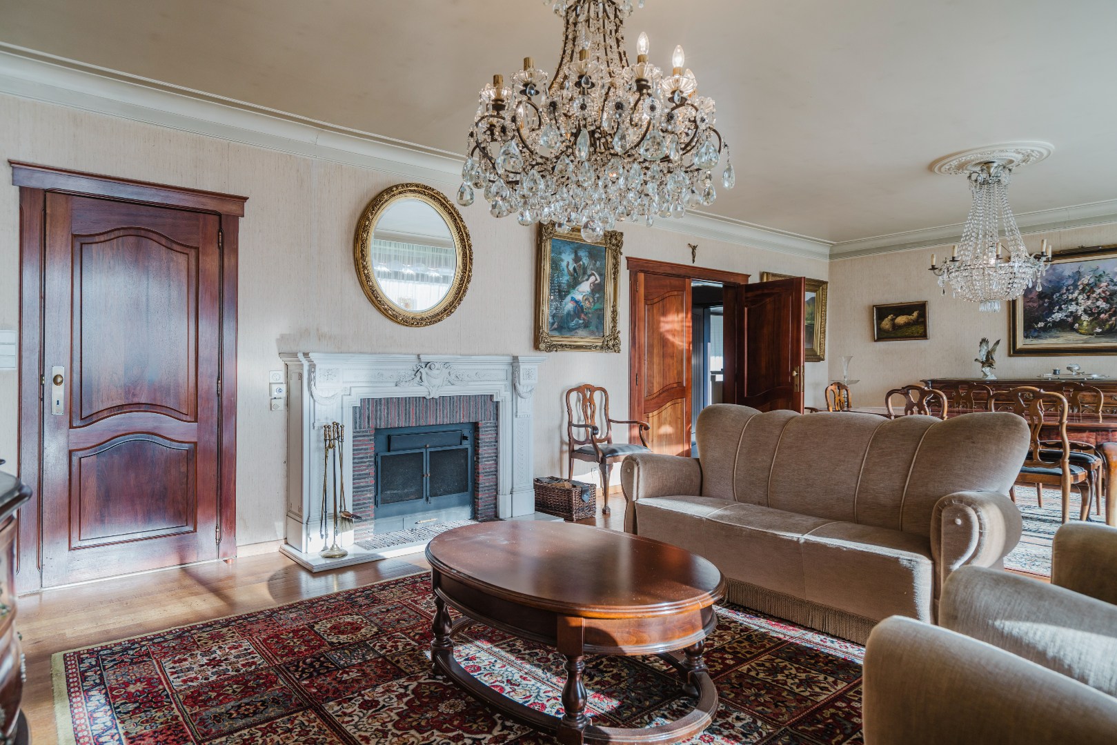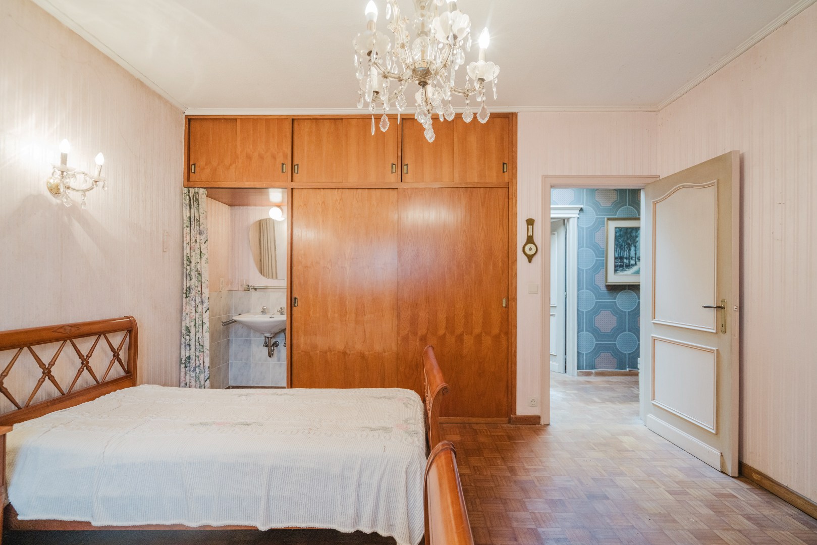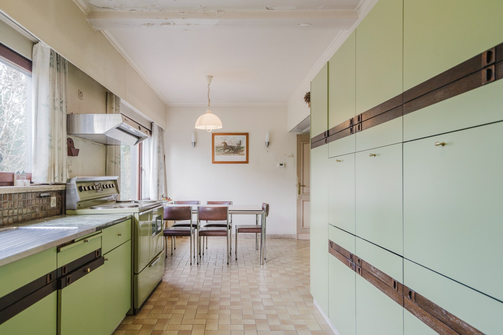 Niet alleen in de living, maar ook in alle slaapkamers ligt massieve parket, wat samen met de stijlvol afgewerkte plinten en deuren bijdraagt aan de tijdloze klasse van deze woning. De grote, aparte keuken sluit naadloos aan bij het leefgedeelte.