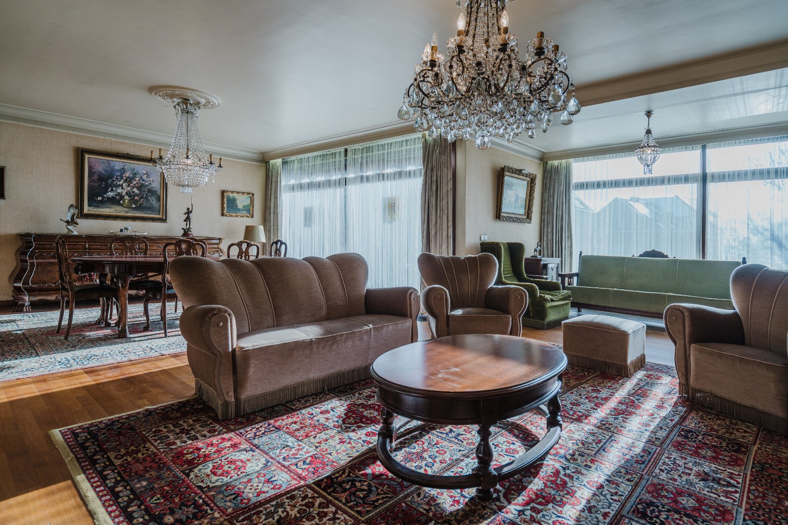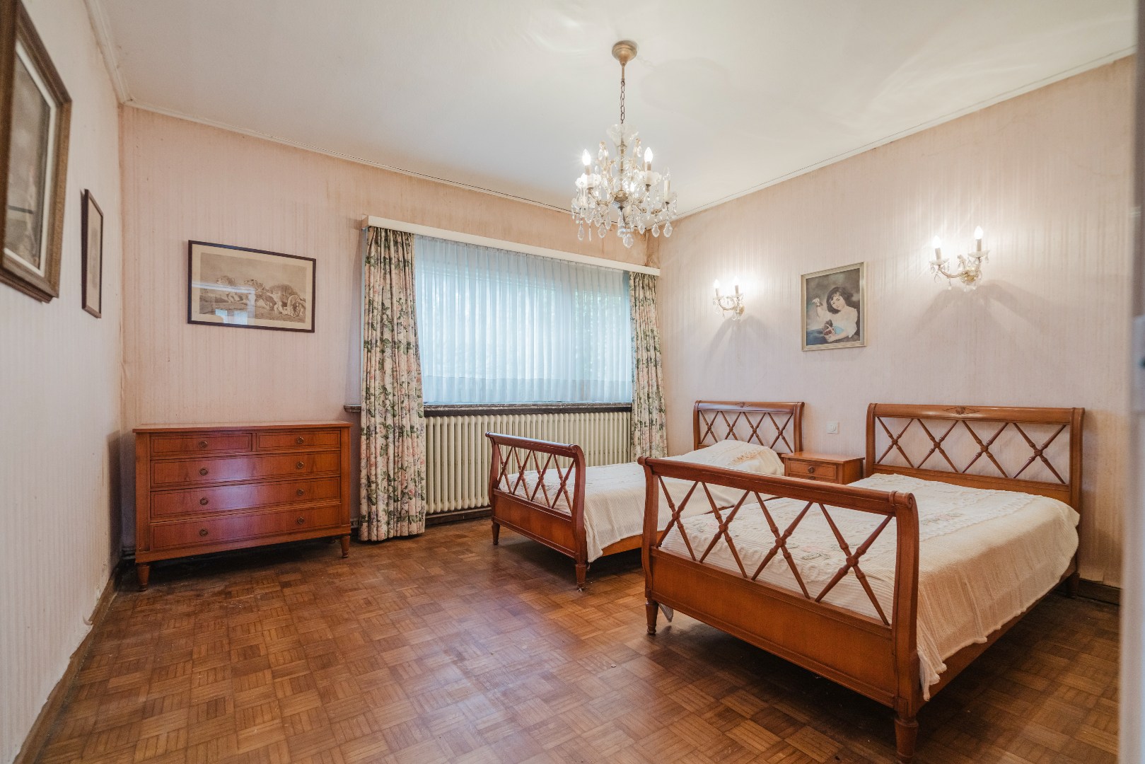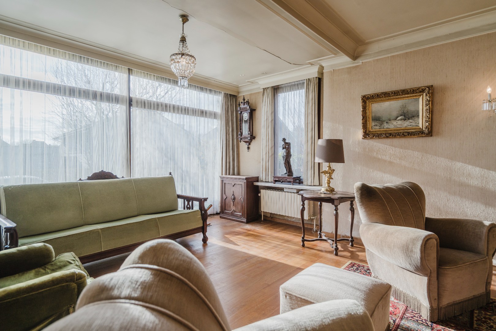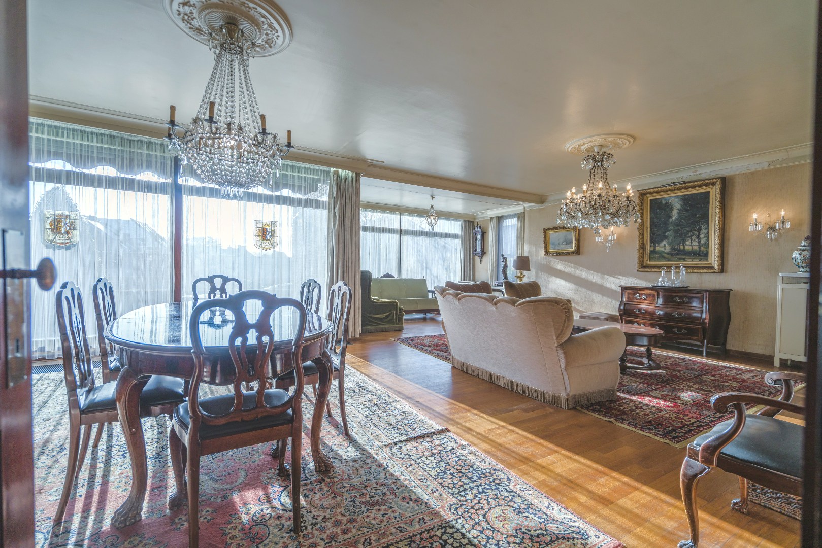 Niet alleen in de living, maar ook in alle slaapkamers ligt massieve parket, wat samen met de stijlvol afgewerkte plinten en deuren bijdraagt aan de tijdloze klasse van deze woning. De grote, aparte keuken sluit naadloos aan bij het leefgedeelte.