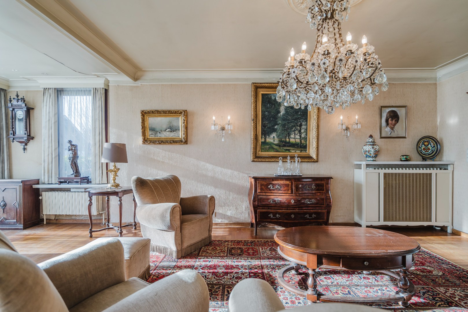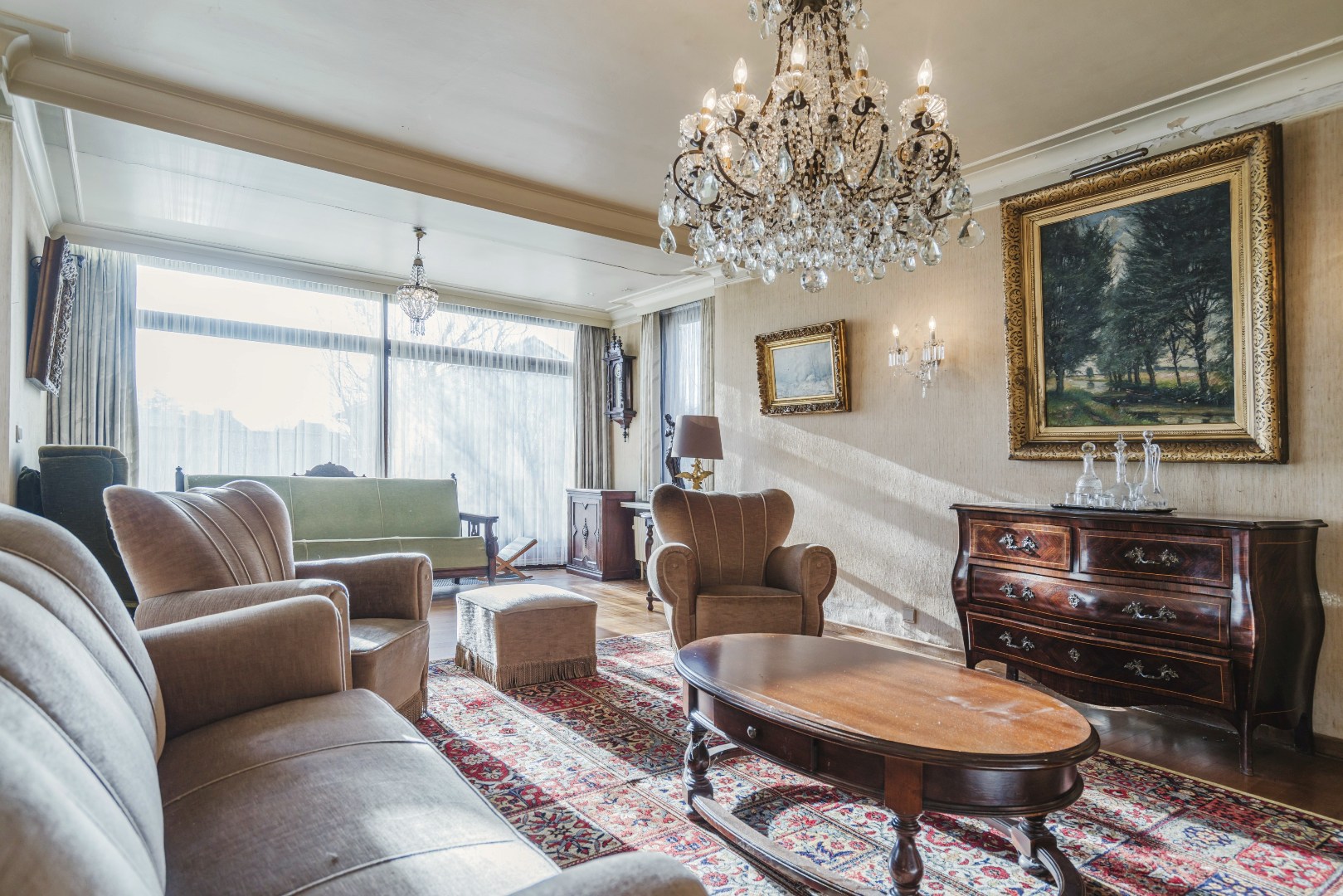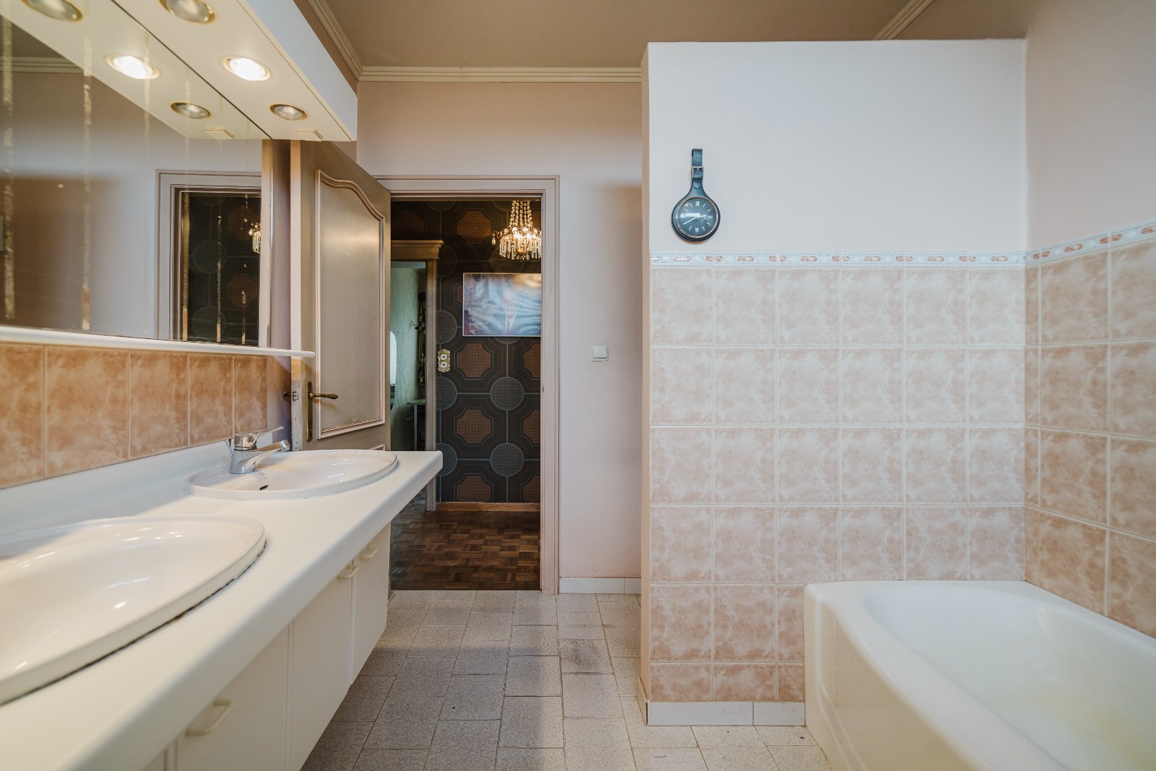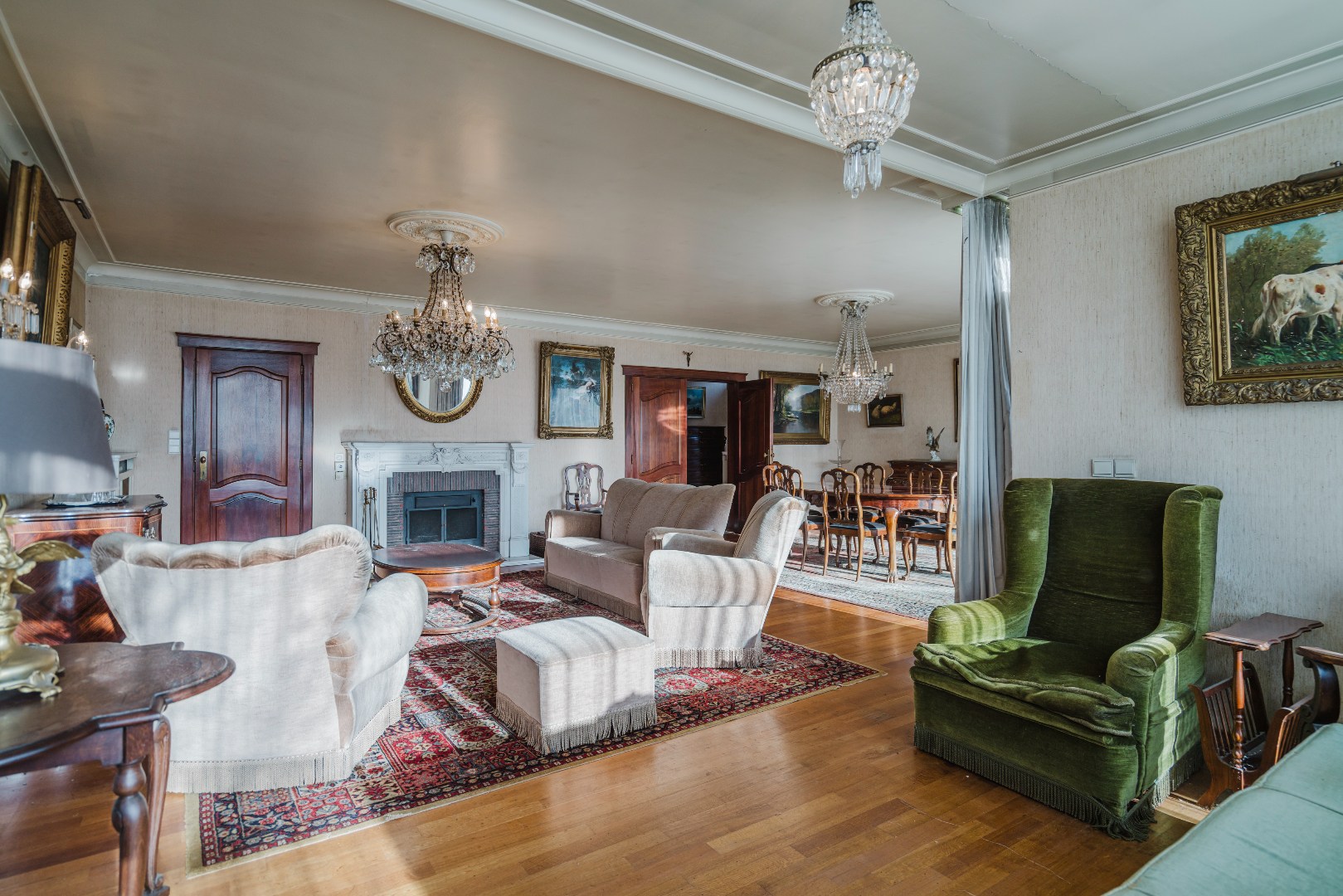 Niet alleen in de living, maar ook in alle slaapkamers ligt massieve parket, wat samen met de stijlvol afgewerkte plinten en deuren bijdraagt aan de tijdloze klasse van deze woning. De grote, aparte keuken sluit naadloos aan bij het leefgedeelte.