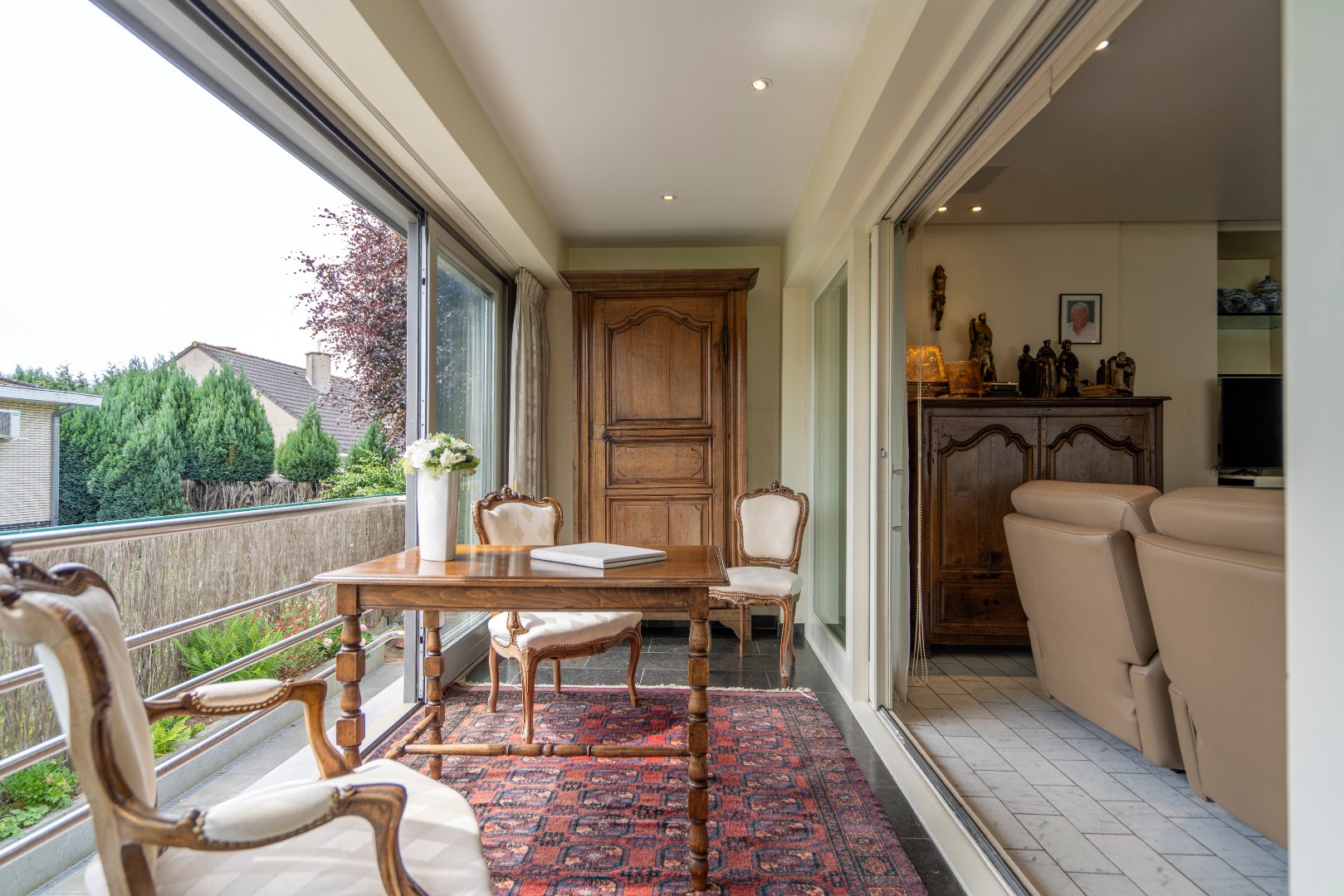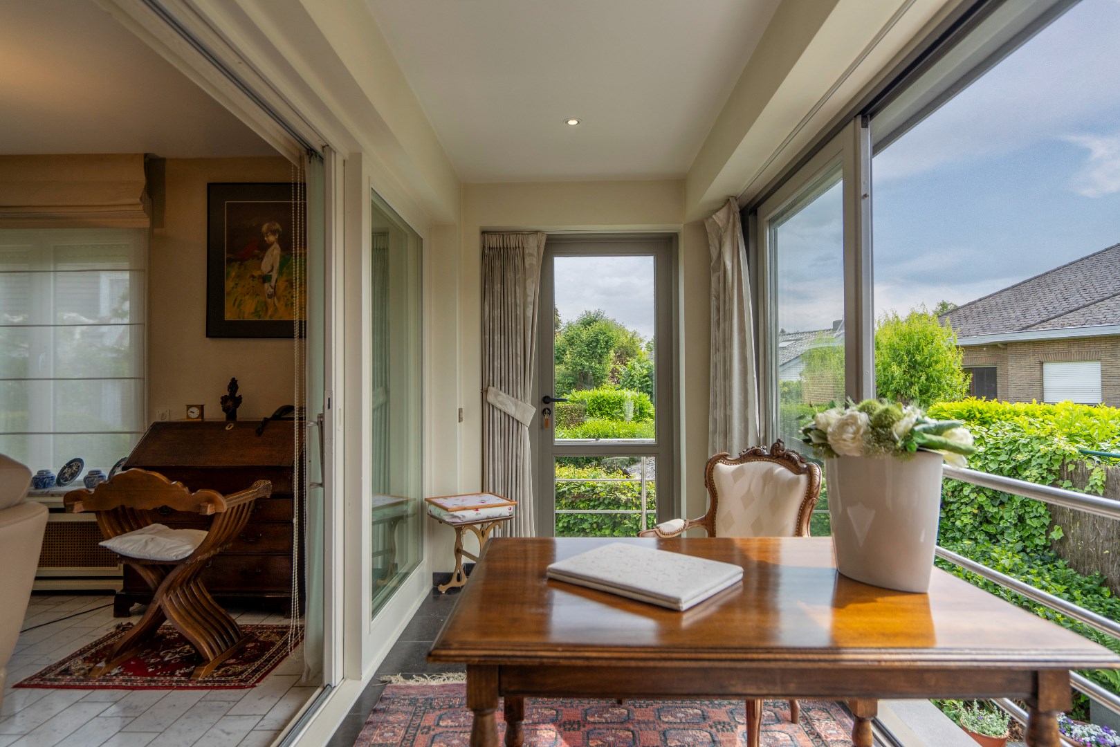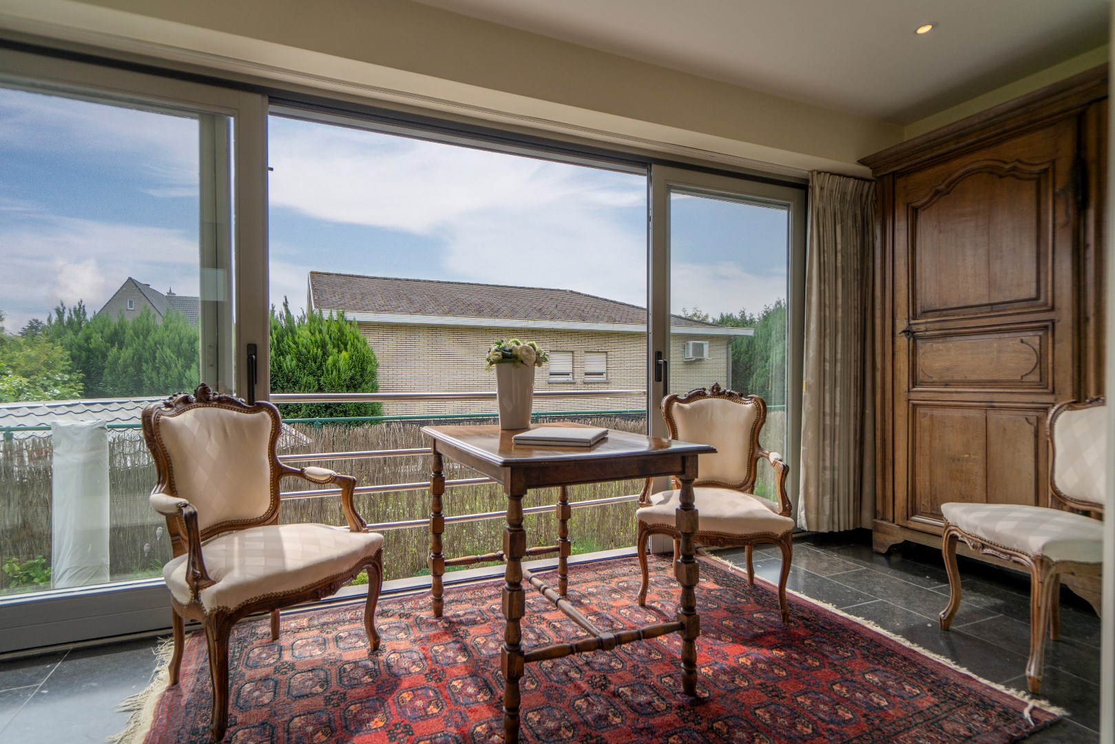 Aansluitend aan de leefruimte bevindt zich een tuinkamer, waar je in alle rust kan genieten van de zon en de buitenlucht, een echte troef, het hele jaar door.