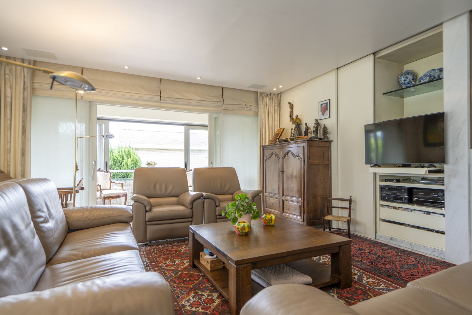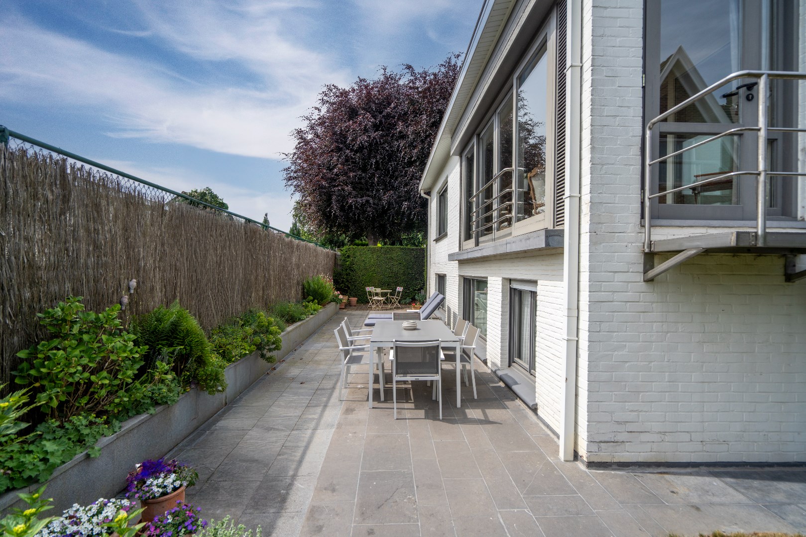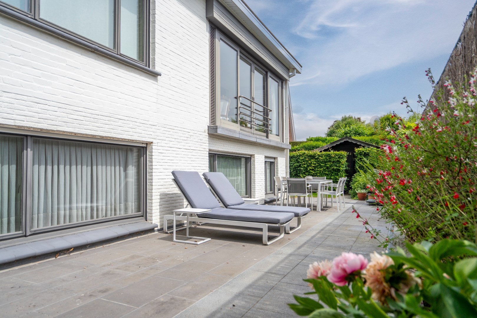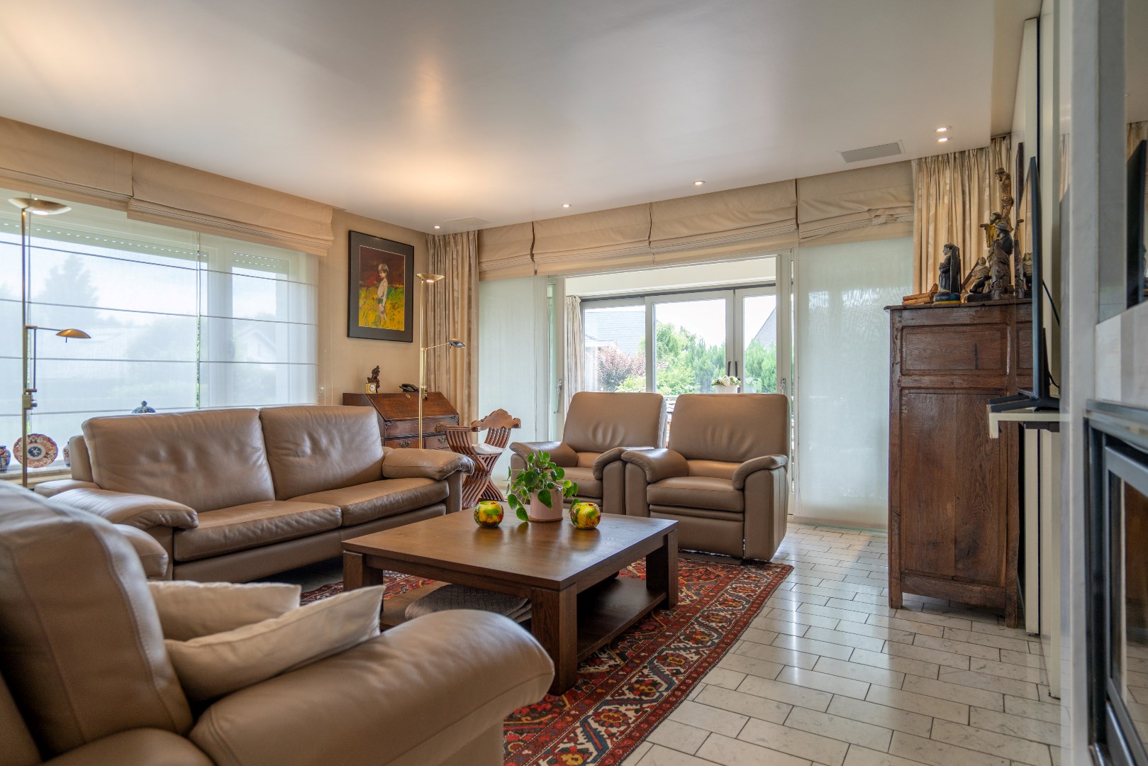 Aansluitend aan de leefruimte bevindt zich een tuinkamer, waar je in alle rust kan genieten van de zon en de buitenlucht, een echte troef, het hele jaar door.
