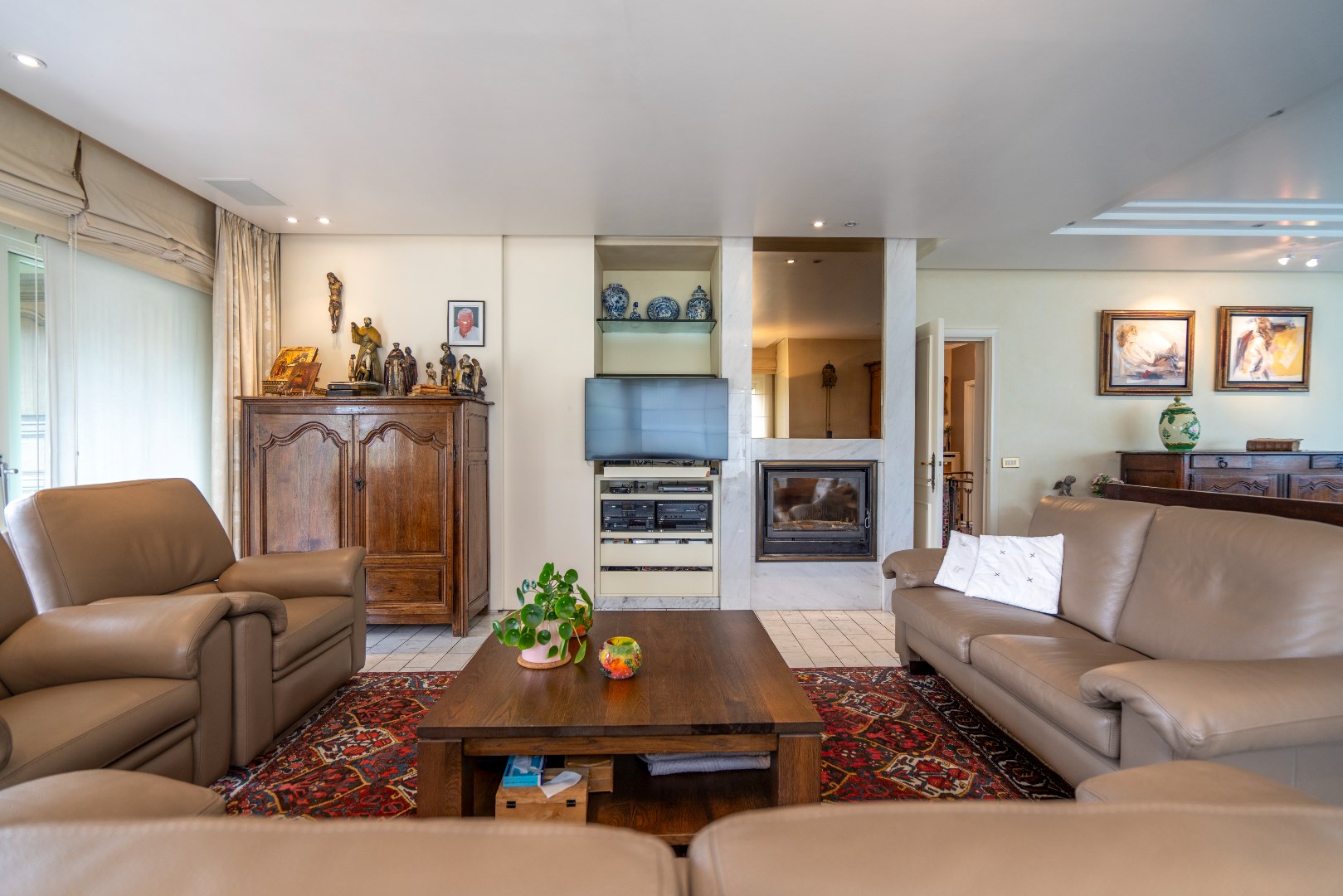 Bij het binnenstappen valt meteen de ruime inkomhal op. Hier tref je een vestiarekast en een gastentoilet, en heb je toegang tot de keuken en de lichtrijke leefruimte die baadt in het daglicht. De leefruimte is bijzonder ruim en vormt het perfecte decor voor gezellige familiemomenten, met de houthaard als sfeervolle blikvanger.