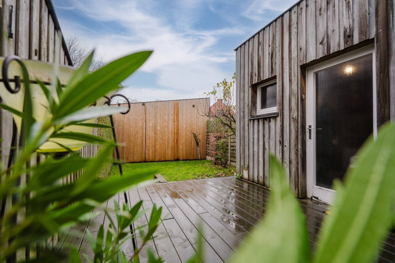 Buiten geniet je van een ruim terras dat uitkijkt op een volledig afgesloten tuin, een rustige en veilige plek om in alle privacy van het buitenleven te genieten. Vooraan op het perceel is er bovendien ruimte om twee wagens te parkeren.