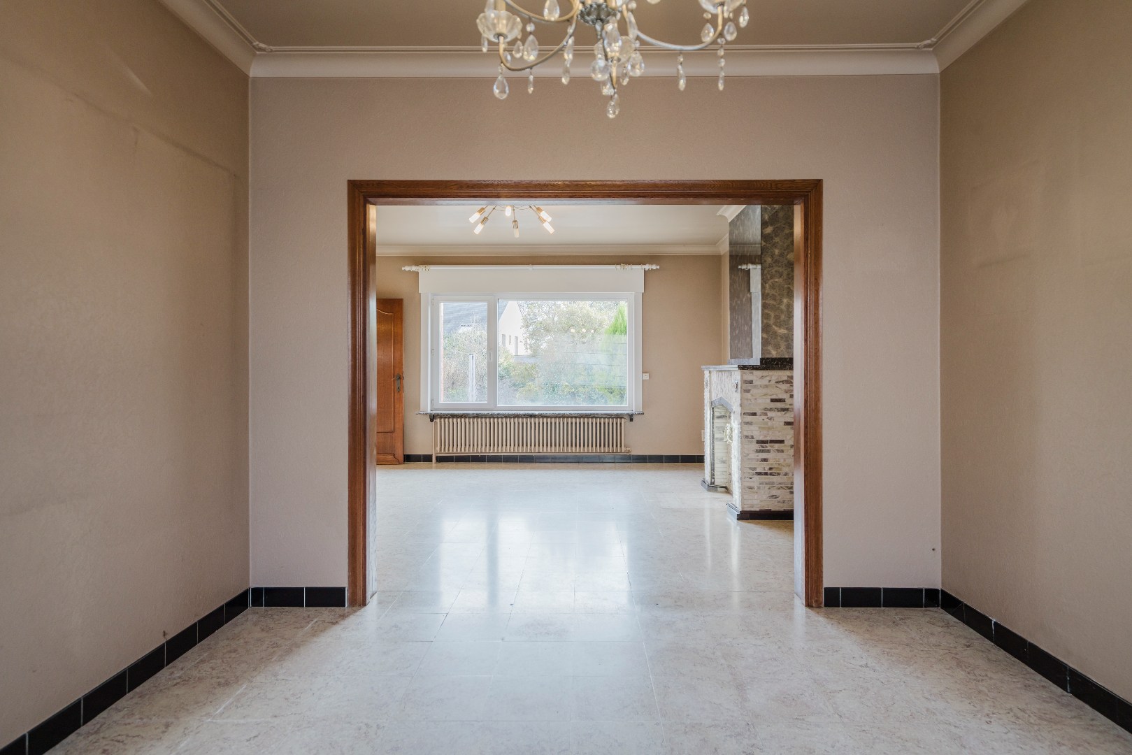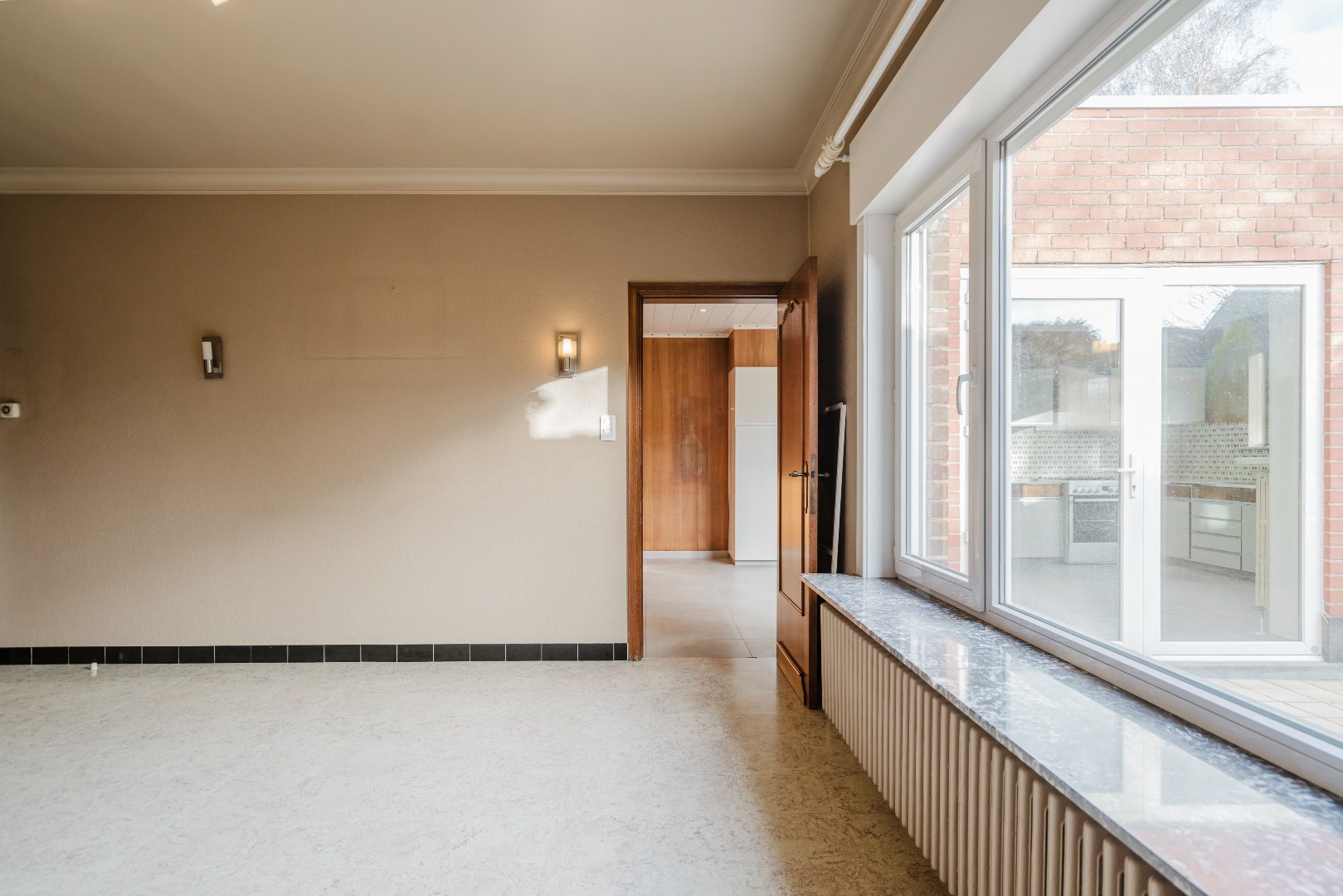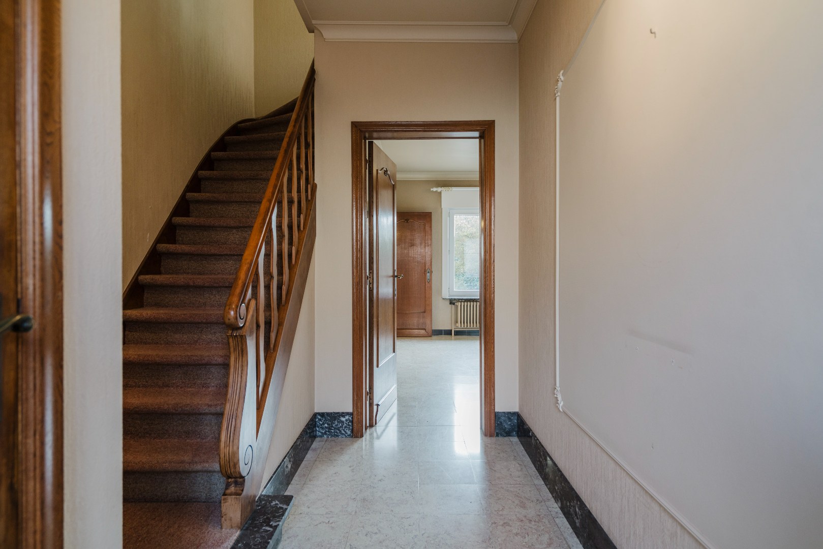 In de inkomhal bevindt zich een gastentoilet. De woonkamer geniet van een aangenaam zicht op de tuin, terwijl de bijzonder ruime keuken directe toegang biedt tot het terras en de tuin.