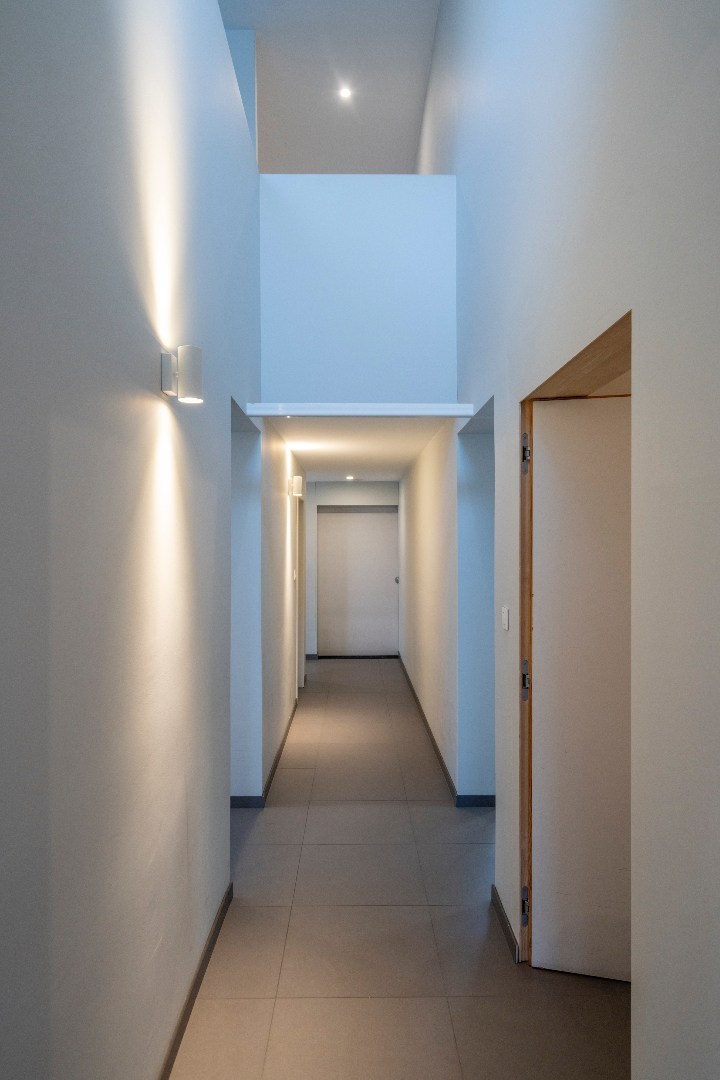 Via de inkom aan de zijkant betreed je een ruime hal die toegang biedt tot alle vertrekken. Vooraan vind je een gastentoilet, de ruime garage met wasplaats en technische ruimte, en een praktische droge kelder.